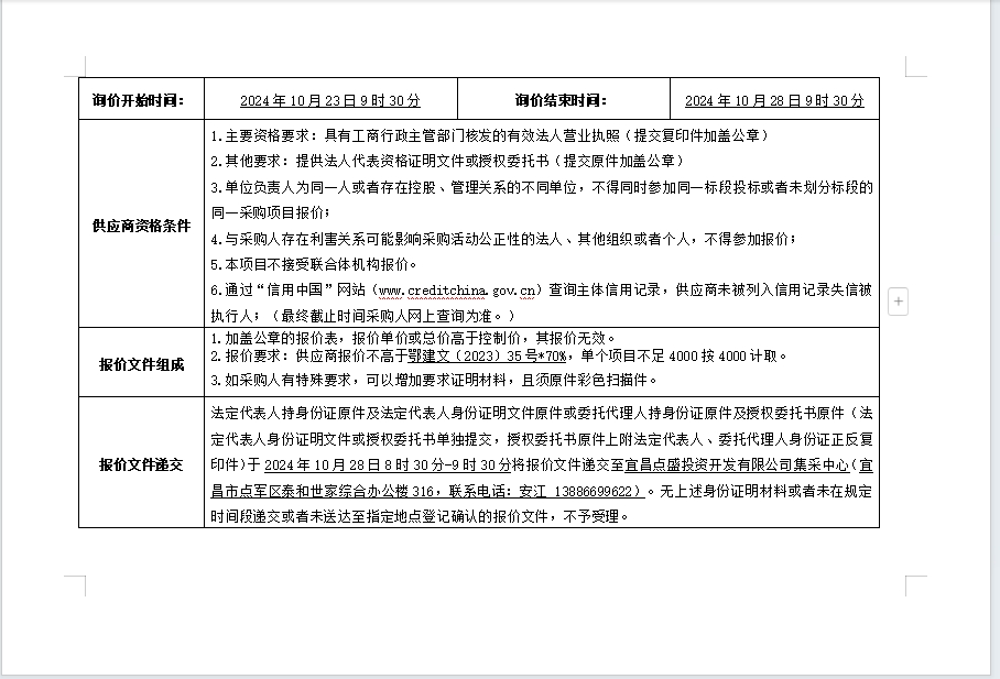 詢價(jià)公告