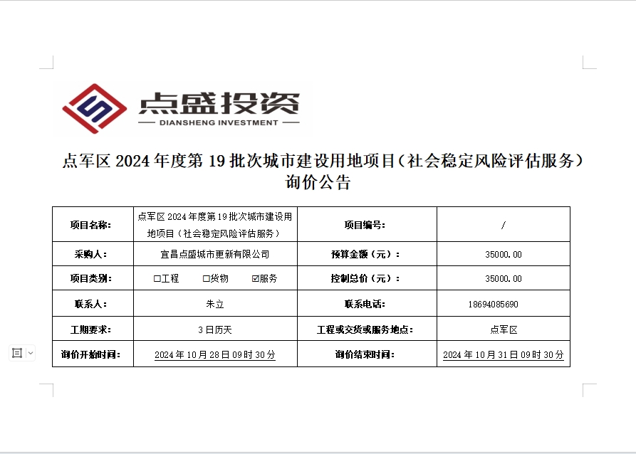 點軍區(qū)2024年度第19批次城市建設用地項目(社會穩(wěn)定風險評估服務)詢價公告