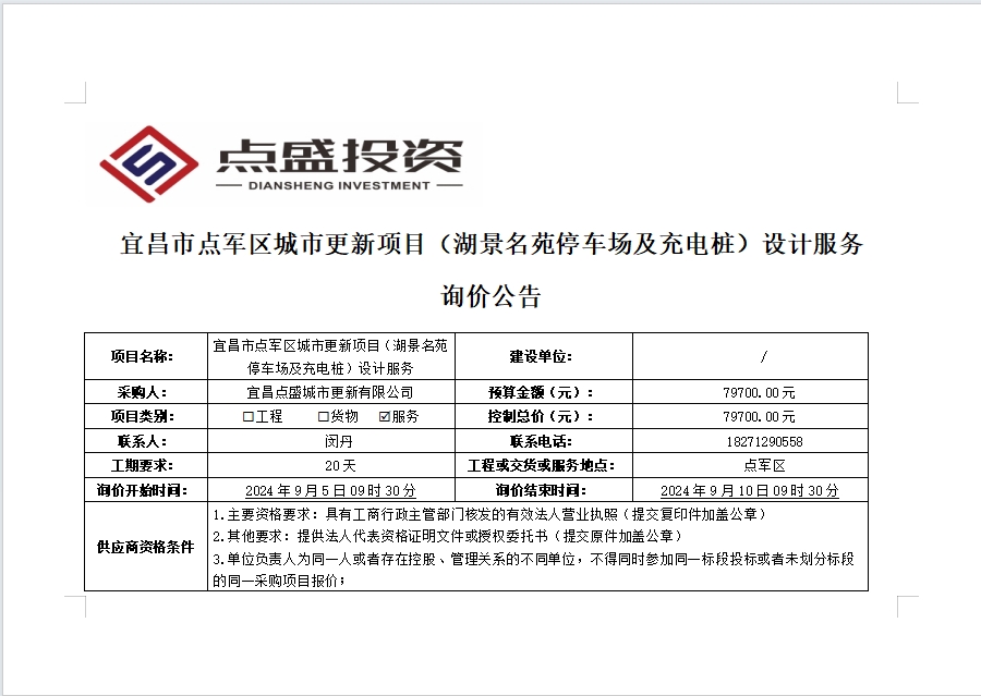 宜昌市點(diǎn)軍區(qū)城市更新項(xiàng)目(湖景名苑停車場及充電樁)設(shè)計服務(wù)詢價公告
